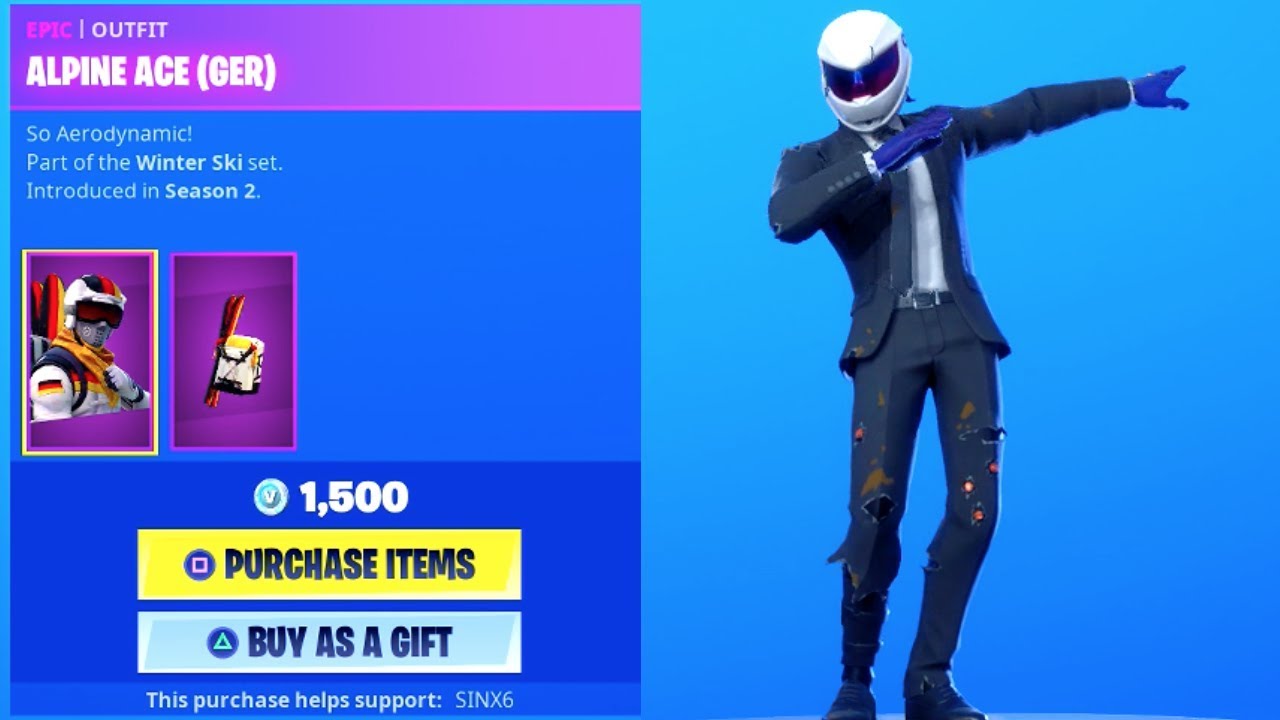 Fortnite Battle Royale today's NEW item shop showcase we have All the Alpine Ace Skins BACK alongside Infinite Dab Emote! New daily Christmas cosmetics in the item shop showcase. CREATOR CODE: SINX6